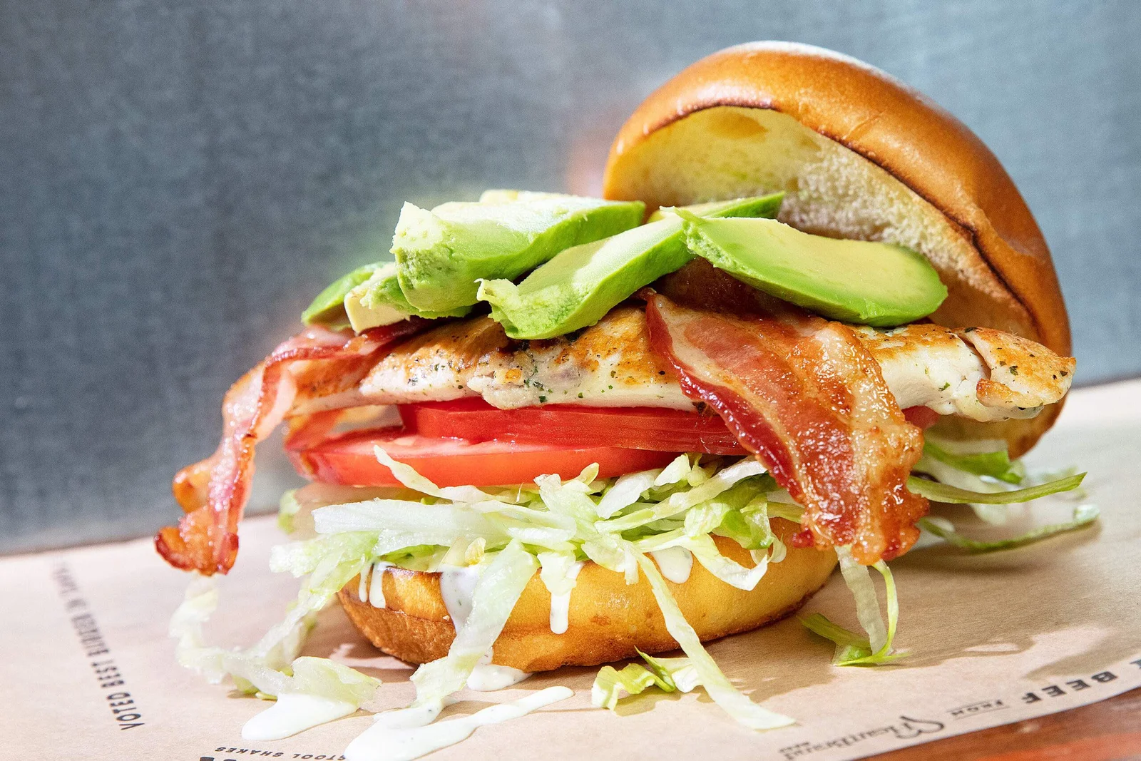 FRESH AVOCADO, CENTER CUT BACON, LETTUCE, TOMATO AND PEPPERCORN RANCH.