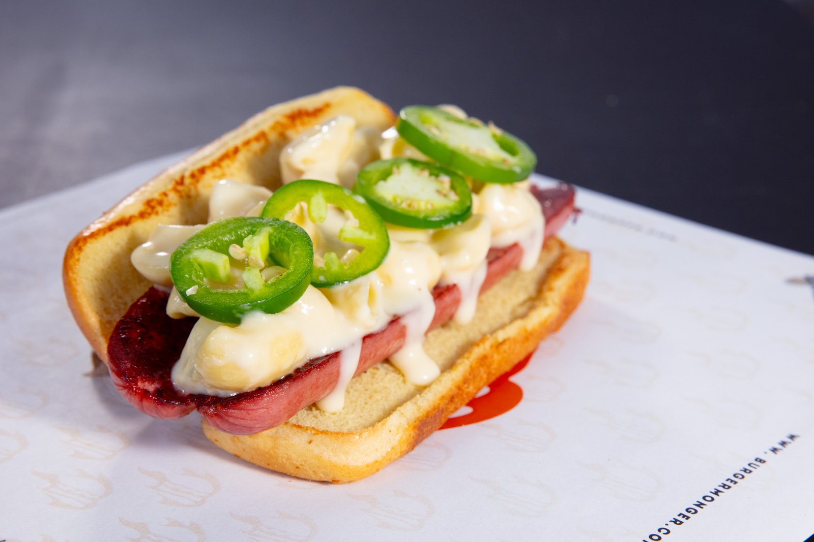 TOPPED WITH CREAMY MAC & CHEESE AND FRESH CUT JALAPENOS.