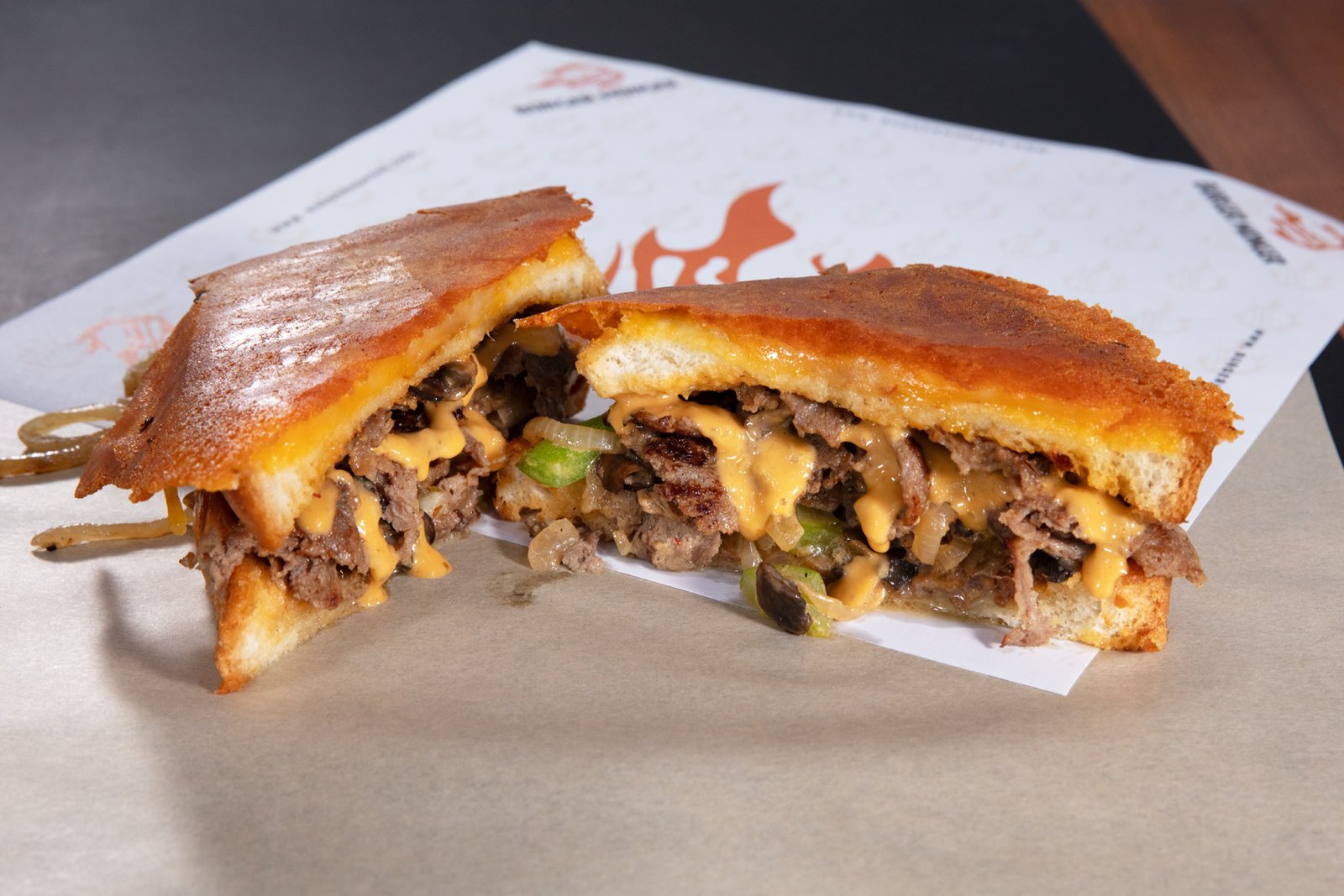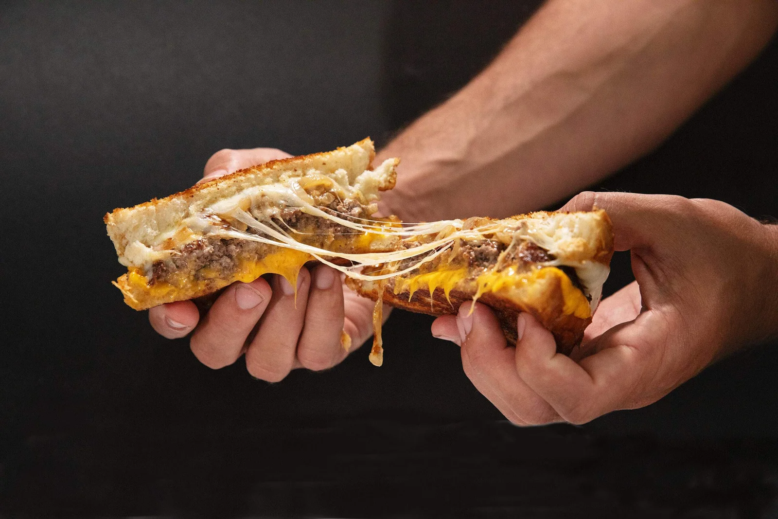 OUR MONGER BURGER PATTY ON GRILLED TEXAS TOAST WITH AMERICAN AND PROVOLONE CHEESE, GRILLED ONIONS AND MONGER SAUCE.
