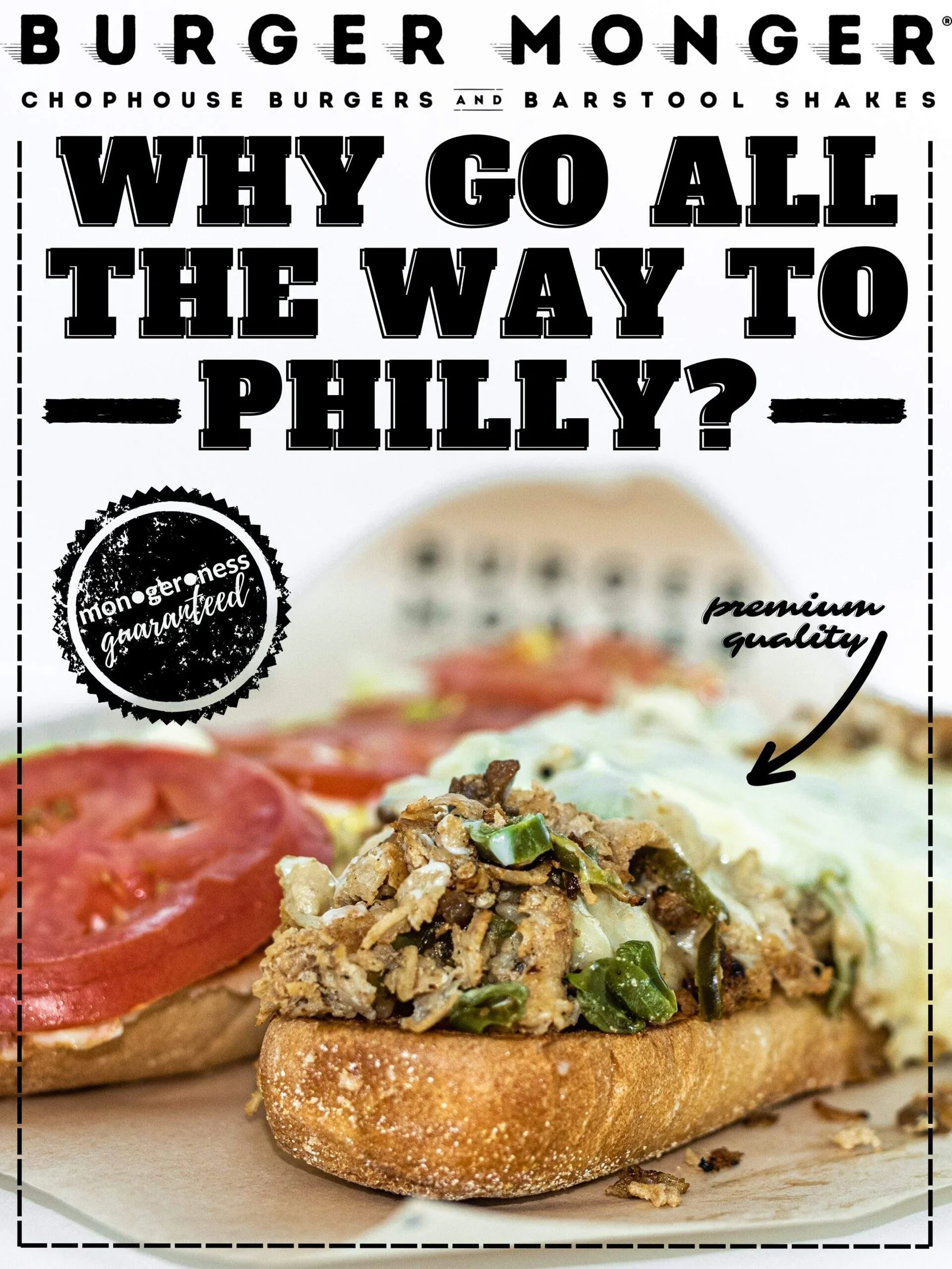 CRAFTED WITH 1/3 POUND FRESH BEEF, LETTUCE, TOMATOES, ONION, PICKLE AND OUR SIGNATURE MONGER SAUCE.