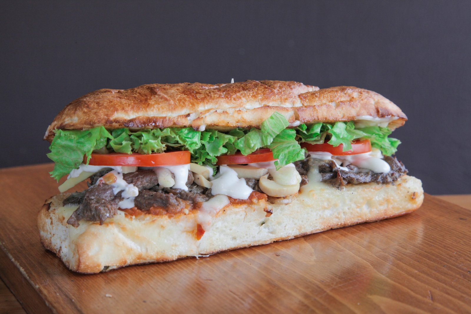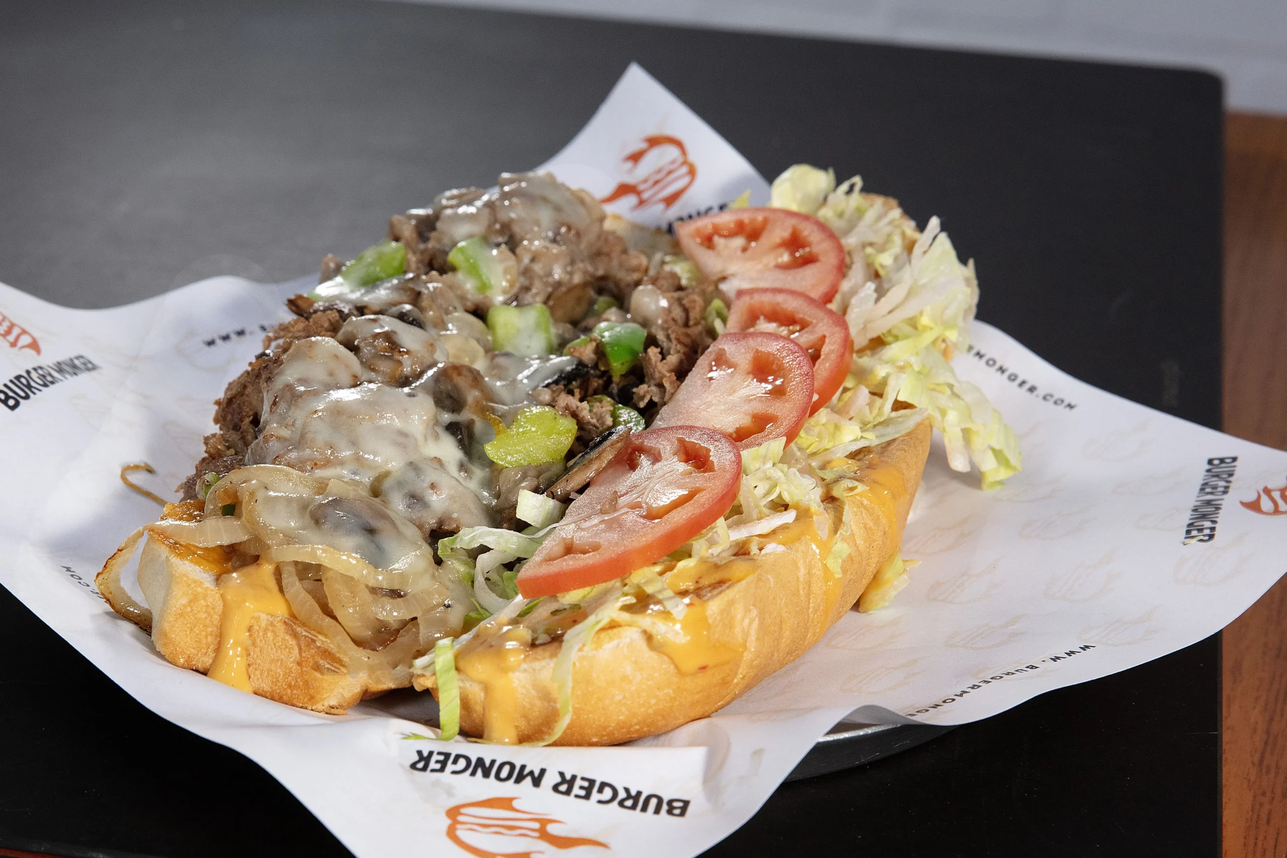 SHAVED RIBEYE OR CHICKEN WITH GRILLED ONION, PEPPERS AND MUSHROOMS TOPPED WITH MONGER SAUCE & PROVOLONE CHEESE.